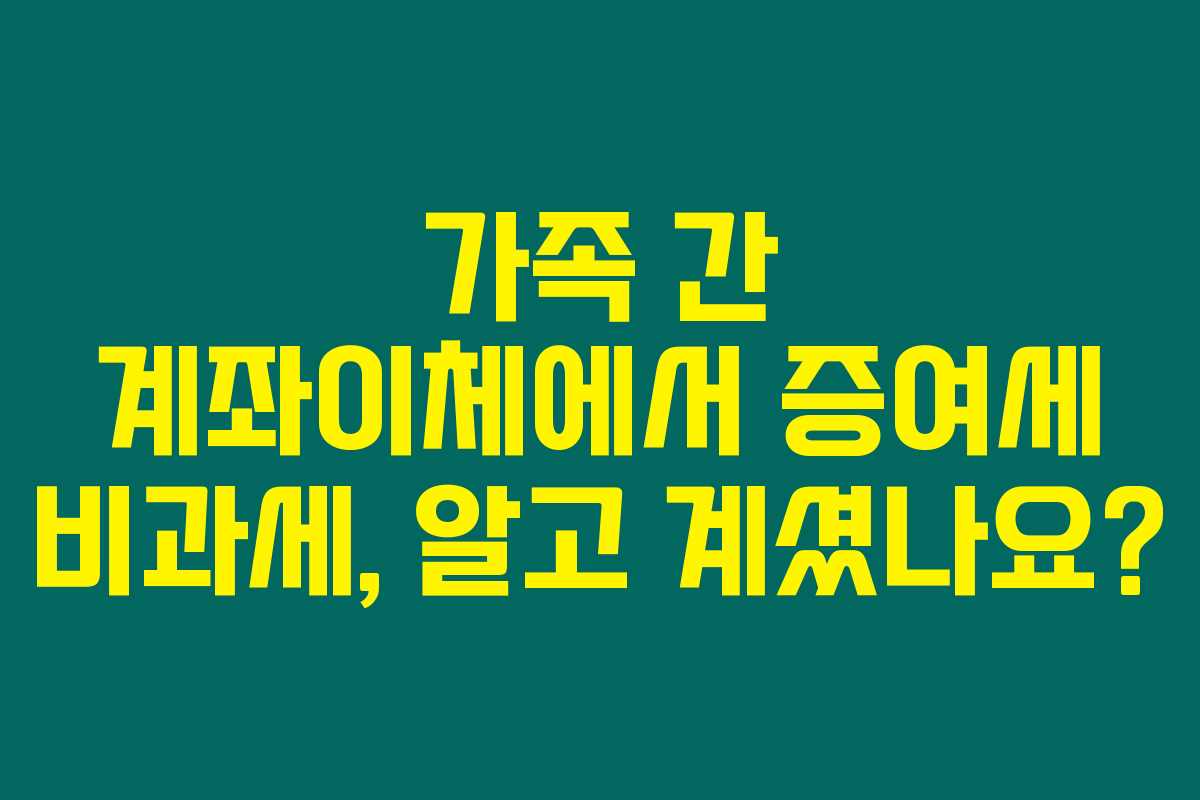 가족 간 계좌 이체를 통해 돈을 주고받는 일이 빈번해지고 있습니다. 그런데 이렇게 주고받는 돈에 대해 증여세가 부과될 수 있다는 사실, 알고 계셨나요? 만약 가족 간 계좌이체를 통해 증여세 문제로 고민하고 있다면, 아래를 읽어보시면 현명한 대처 방법과 비과세에 대한 정보를 얻을 수 있어요.
