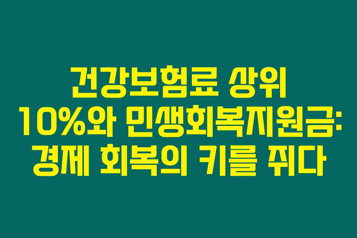 제가 알아본 바로는, 2025년부터 시행될 민생회복지원금은 코로나19로 인해 침체된 경제를 회복하는 데 중대한 역할을 할 예정입니다. 특히 건강보험료가 상위 10%에 해당하는 국민들이 어떤 기준으로 선정되는지에 대한 정보는 앞으로의 지원금 지급에 큰 영향을 미칠 것으로 보입니다. 아래를 읽어보시면 건강보험료 상위 10%와 민생회복지원금의 관계를 깊게 이해해보실 수 있을 거에요.