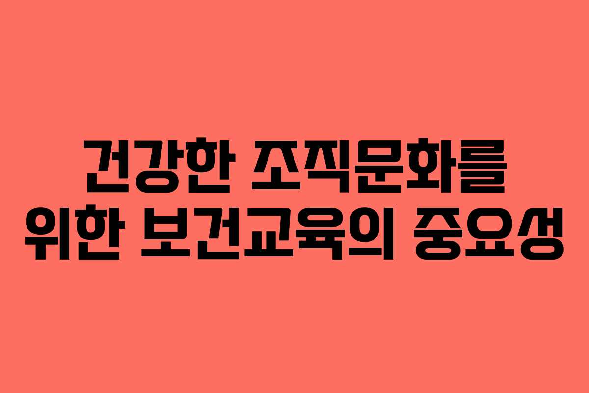 보건교육을 통해 근로자들은 자신의 건강 상태를 이해하고, 질병 예방 및 관리 방법을 배우게 되어 건강한 조직문화를 조성할 수 있습니다.