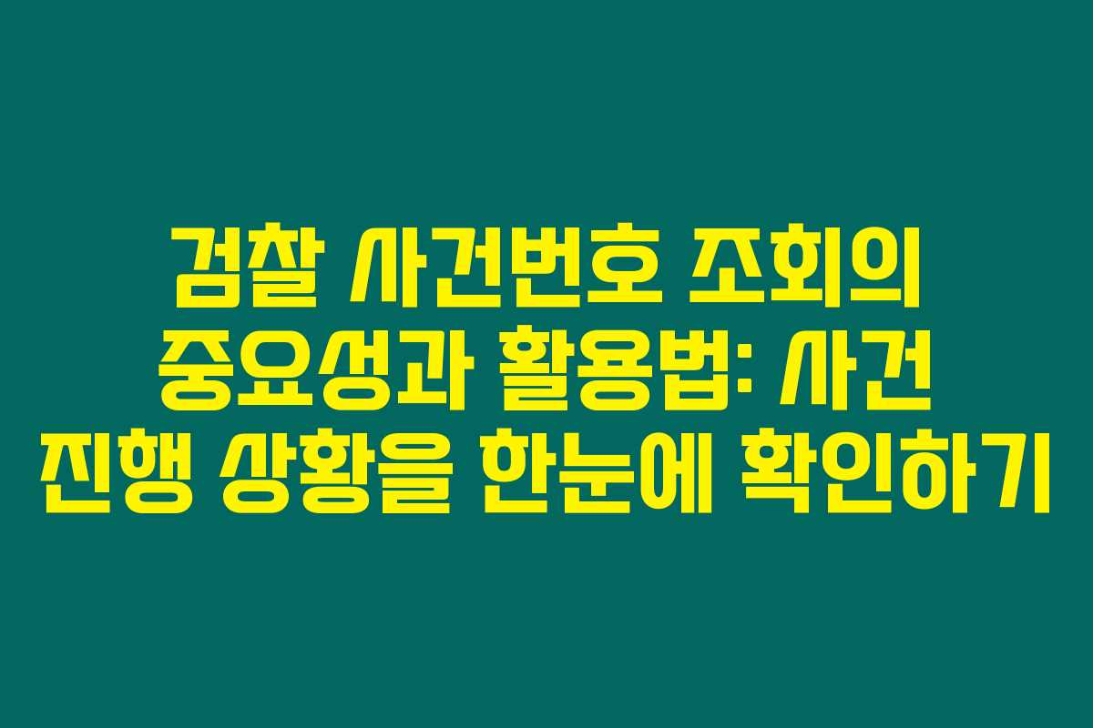 검찰 사건번호 조회는 사건의 흐름을 이해하는 데 필수적인 과정입니다. 필요한 정보를 미리 체크하여 불안감을 줄이고, 적절한 대응을 준비하는 것이 중요하니 꼭 확인해보세요!