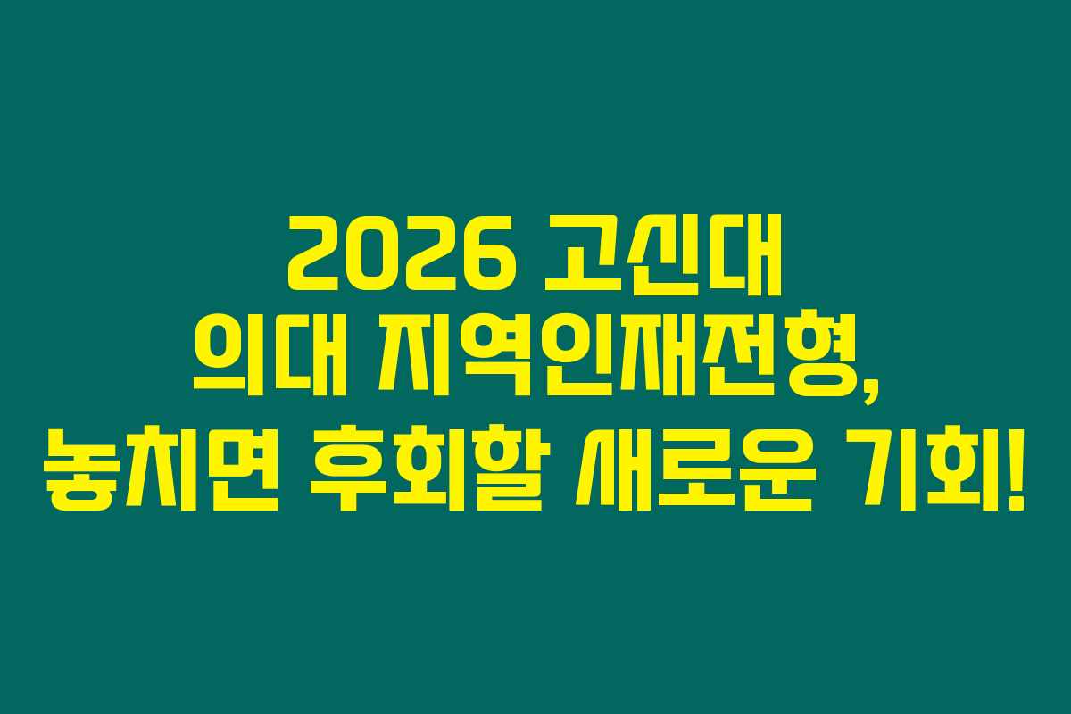 고신대학교 의대의 2026 지역인재전형은 의대 선발 비율이 56%라는 점에서 지역 직업인으로서의 꿈을 이루고자 하는 많은 학생들에게 중요한 기회를 제공합니다. 이 전형에 대한 재미있고 상세한 정보를 확인해보세요!