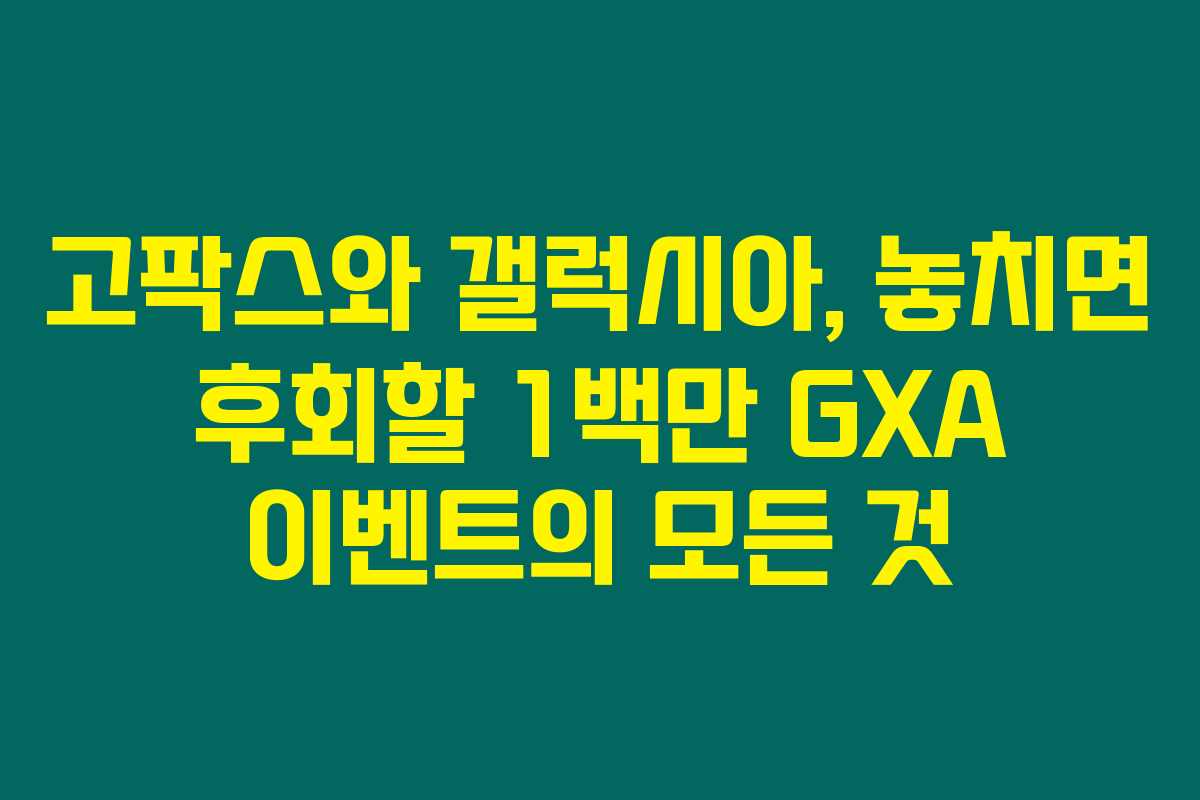 고팍스(Gopax)와 갤럭시아의 특별한 제휴 이벤트가 진행 중입니다! 총 1백만 GXA가 지급되는 이 기회는 2023.6.23부터 7.13까지 한정적으로 열리니 꼭 확인해 보세요. 아래를 읽어보시면 이 이벤트의 핵심 내용과 참여 방법, 그리고 주의사항까지 자세히 안내해 드릴게요.
