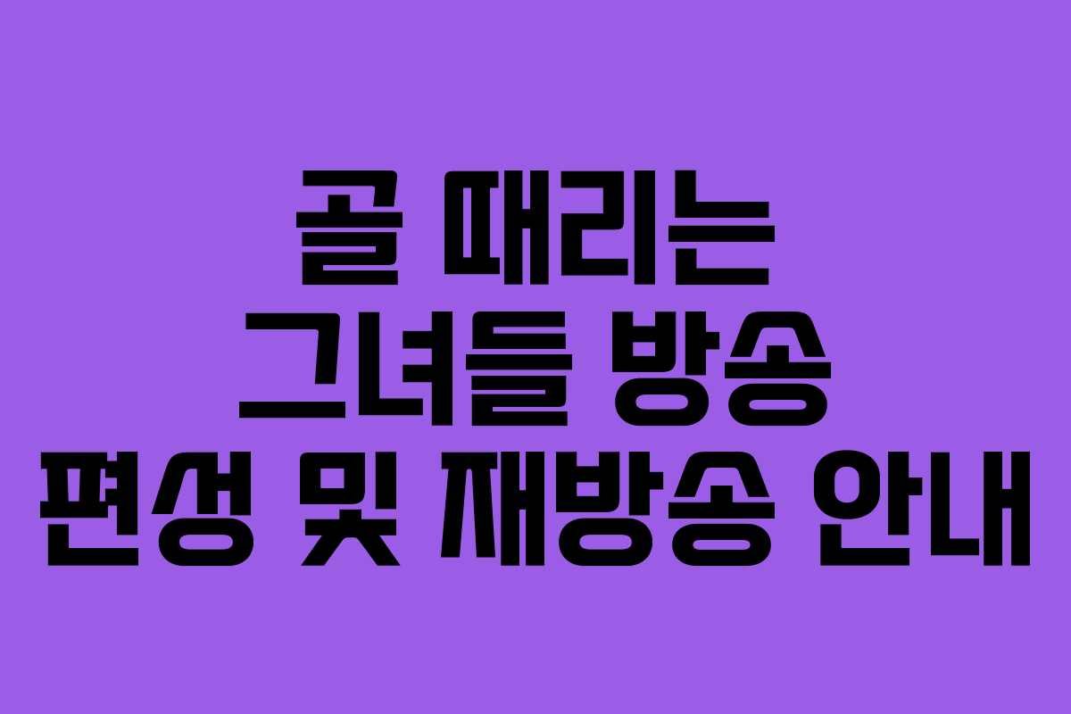 ‘골 때리는 그녀들’은 매주 수요일 오후 9시에 방송되는 인기 예능 프로그램입니다. 이 프로그램은 생방송으로 진행되며, 시청자들에게 다양한 재미를 제공합니다. 이번 글에서는 프로그램의 방송 방식과 재방송 편성에 대해 자세히 안내하겠습니다.