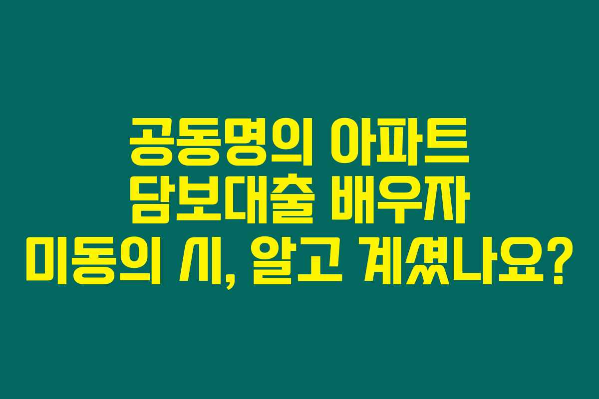 - 공동명의 아파트 담보대출 이용 시 주의할 점