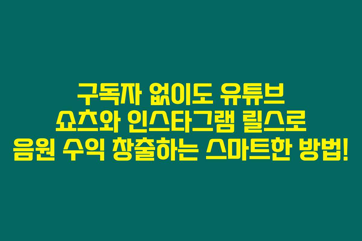 정리하자면, 구독자 없이도 유튜브 쇼츠와 인스타그램 릴스를 통해 음원 수익을 창출할 수 있는 다양한 방법이 있습니다. 쇼츠뮤직을 활용하여 나만의 콘텐츠를 만들어보며 수익을 극대화할 수 있는 기회를 놓치지 않길 바래요.