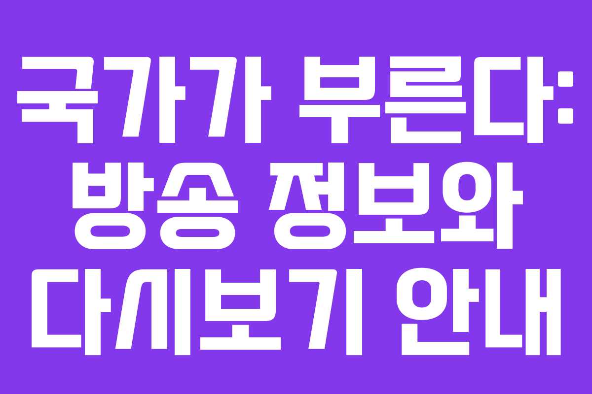 “국가가 부른다”는 매주 목요일 저녁 10시에 TV조선에서 방송되는 인기 예능 프로그램입니다. 이 프로그램은 국민의 요청에 따라 다양한 노래를 불러주는 형식으로 진행되며, 시청자들에게 많은 사랑을 받고 있습니다.