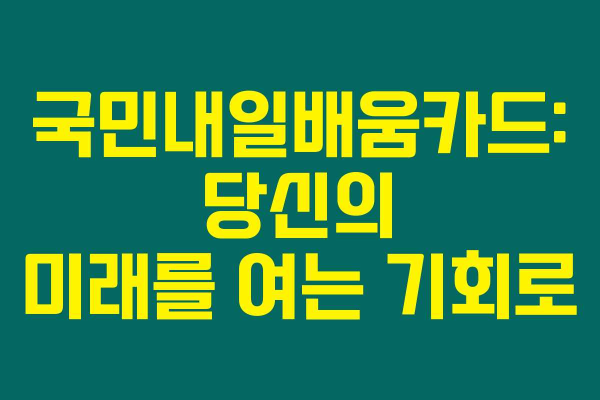 국민내일배움카드는 자기 개발과 직업 능력 신장을 위해 정말 중요한 제도랍니다. 이러한 제도를 통해 다양한 혜택을 누리실 수 있으니 꼭 신청해 보세요. 본인이 필요한 교육을 받아서 더 나은 직업을 찾는 데 도움이 될 거예요.