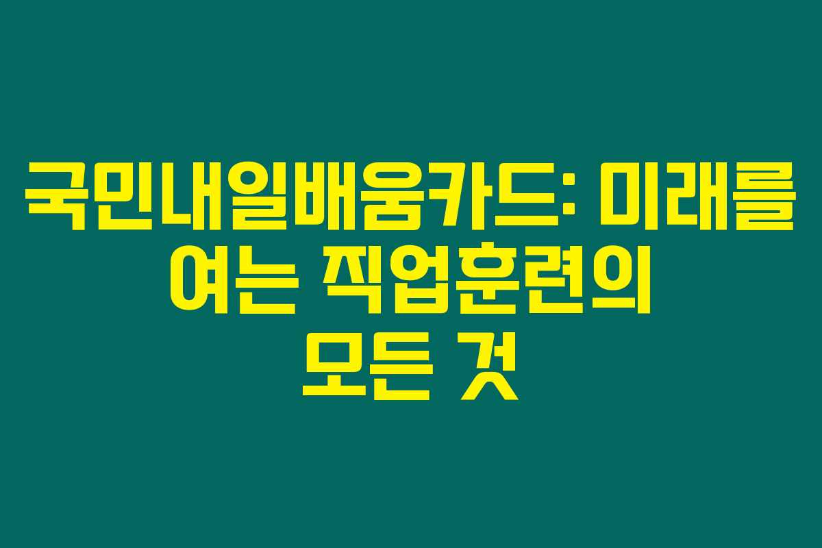 국민내일배움카드는 대한민국의 직업능력개발법에 근거한 직업훈련 지원 프로그램으로, 2020년 1월에 기존 내일배움카드를 통합하여 시행되고 있어요. 제가 알아본 바로는 이 카드의 목적은 국민들이 정확하고 체계적인 직업능력 개발을 통해, 급격한 기술 발전에 대응할 수 있도록 지원하는 거랍니다.