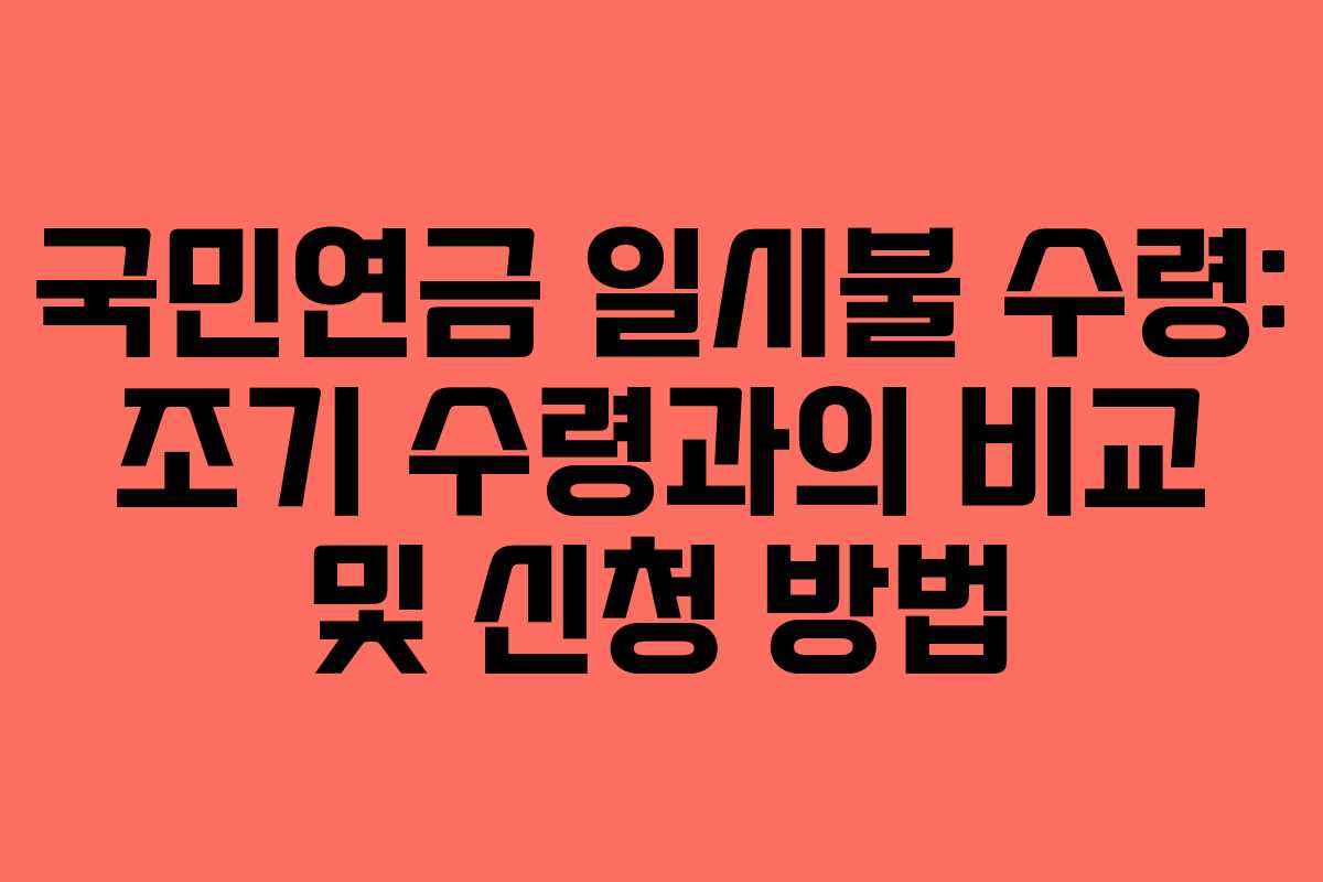 국민연금 일시불 수령: 조기 수령과의 비교 및 신청 방법