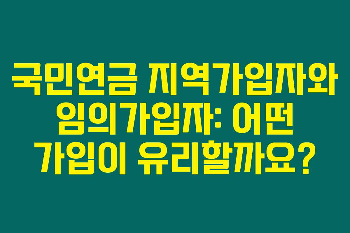 제가 직접 체크해본 바로는, 국민연금은 우리 모두의 노후를 담보하는 중요한 제도입니다. 특히 퇴직 후 지속적으로 연금을 유지하고자 하는 많은 분들이 지역가입자와 임의가입자에 대해 궁금해하실 텐데요. 아래를 읽어보시면 해당 두 가지 가입 방식의 차이점과 유리한 가입 조건에 대해 쉽게 이해하실 수 있을 거예요.