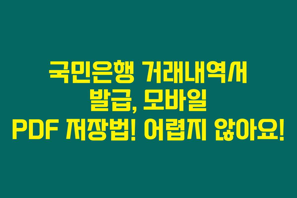 모바일로 거래내역서를 발급받는 게 불편하시다고요? 저도 그랬거든요! 하지만 이제는 국민은행 앱을 통해 간편하게 거래내역서를 발급받을 수 있어요. 아래를 읽어보시면 여러분도 쉽게 거래내역서를 PDF로 저장하는 방법을 알게 될 거예요. 정말 간단한 방법이니, 놓치지 마세요!