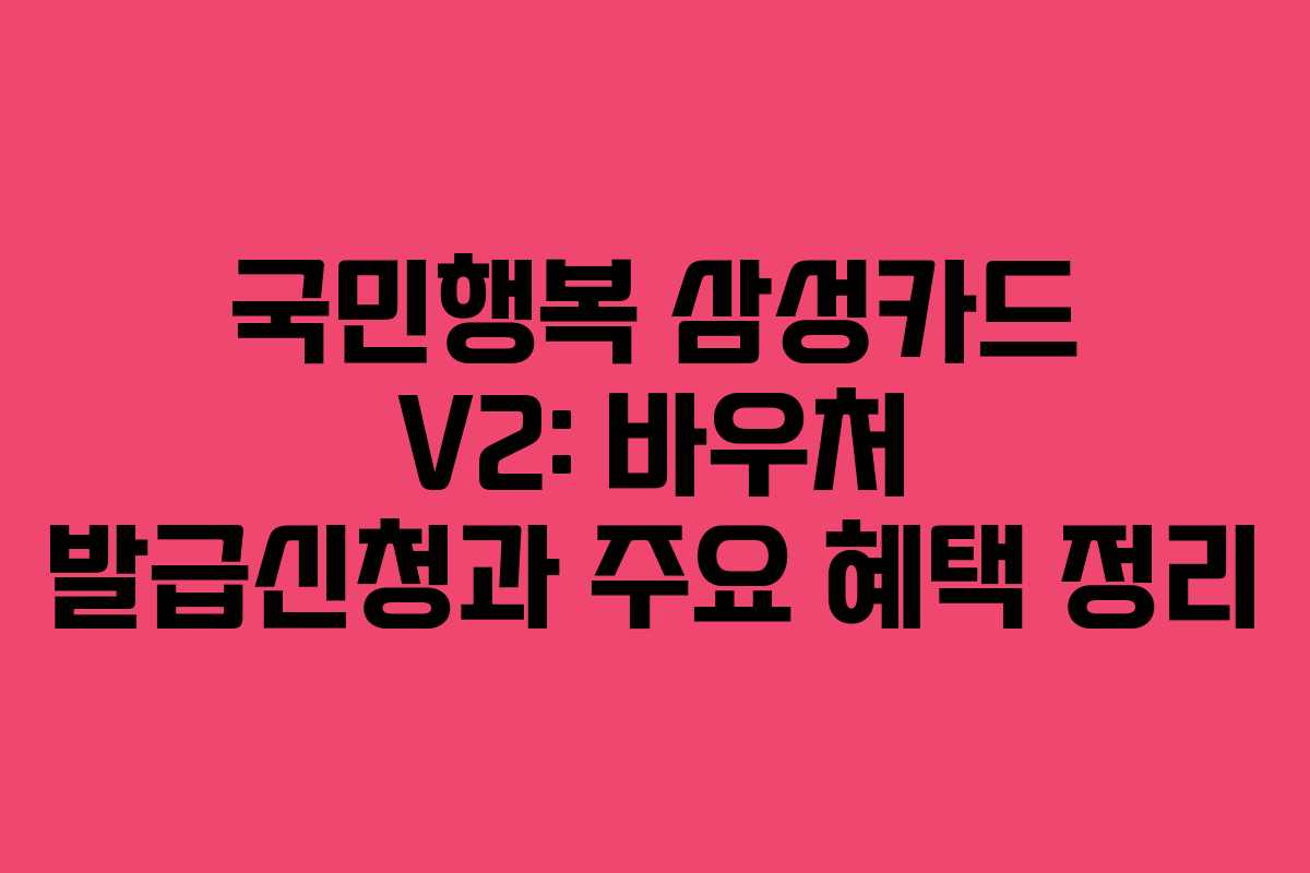 국민행복 삼성카드 V2는 국민행복카드를 기반으로 하여 삼성카드의 추가 혜택을 결합한 형태입니다. 이를 통해 기본적인 바우처 사용 외에도 다양한 금융적 지원을 받을 수 있습니다.