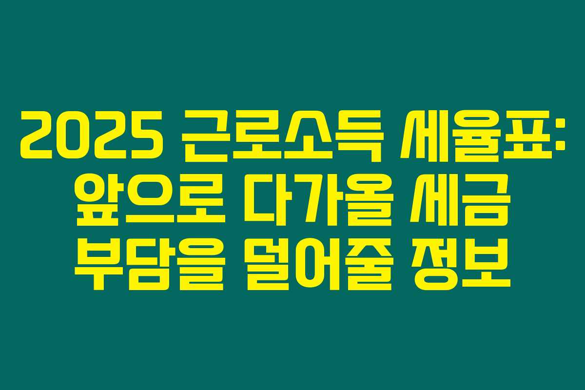 2025 근로소득 세율표: 앞으로 다가올 세금 부담을 덜어줄 정보
