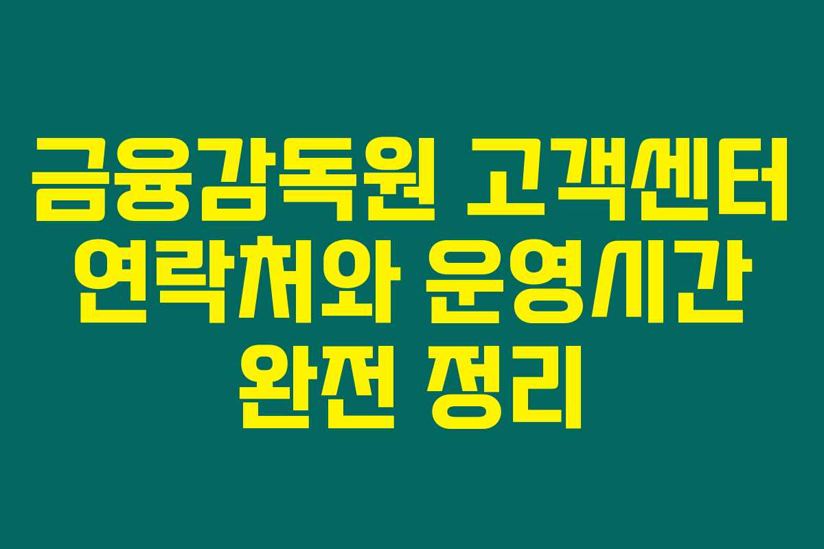 금융감독원 고객센터 연락처와 운영시간 완전 정리
