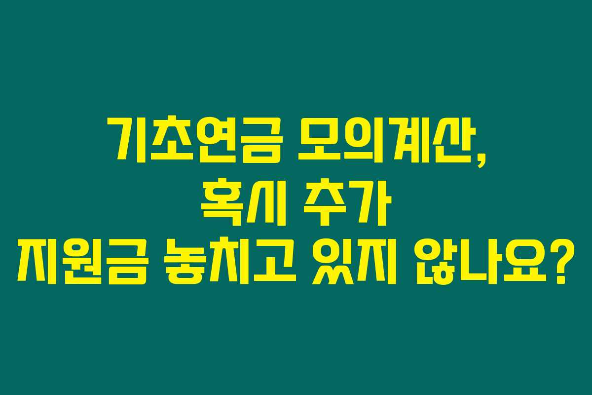 기초연금에 대한 궁금증이 많은 분들이 많을 거라 생각해요. 특히 만 65세 이상이시면 기초연금 모의계산을 통해 내가 받을 수 있는 금액이 얼마인지 알아보는 건 필수라는 거 아시죠? 아래를 읽어보시면 기초연금 모의계산에 대한 모든 정보를 얻을 수 있어요! 응원합니다!