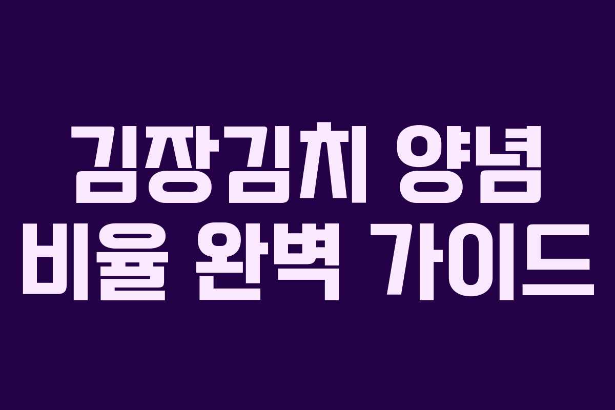 - 김장김치 양념 비율은 어떻게 정해야 하나요?