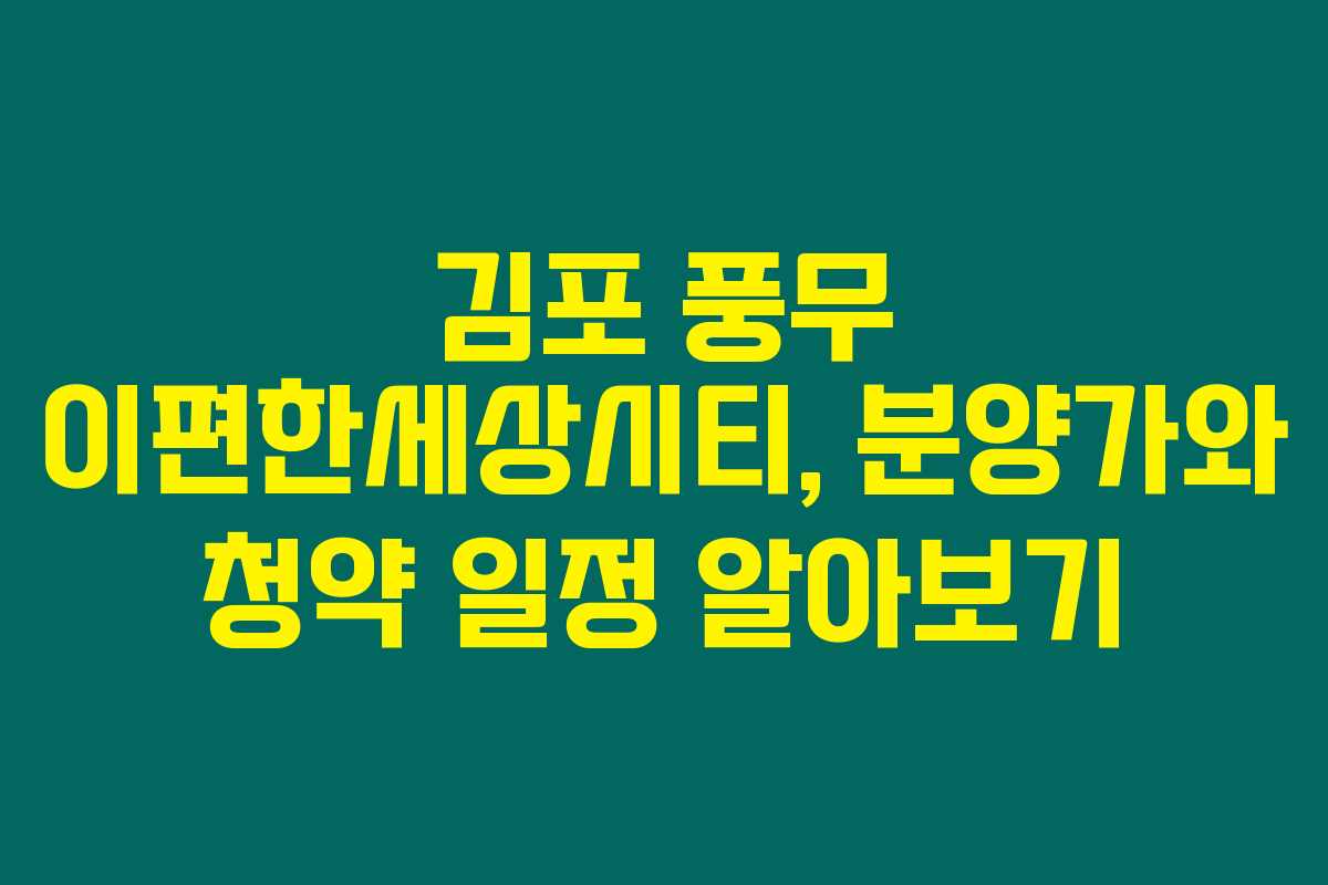 김포 풍무 이편한세상시티, 분양가와 청약 일정 알아보기