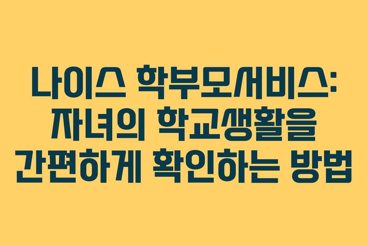 나이스 학부모서비스: 자녀의 학교생활을 간편하게 확인하는 방법