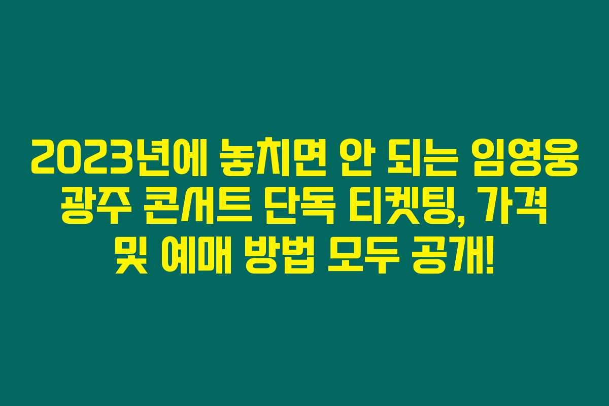 임영웅의 팬이라면 주목! 2023년 임영웅 광주 콘서트를 예매할 기회를 놓치고 싶지 않다면 지금 바로 정보를 확인해 보세요. 교통 혼잡이 예상되는 연말에 최고의 효도 선물로 콘서트를 선택하는 저도, 여러분과 같은 마음이에요. 아래에서 2023년 광주 임영웅 콘서트의 티켓팅 방법과 가격 및 유의사항을 자세히 알아보겠습니다.