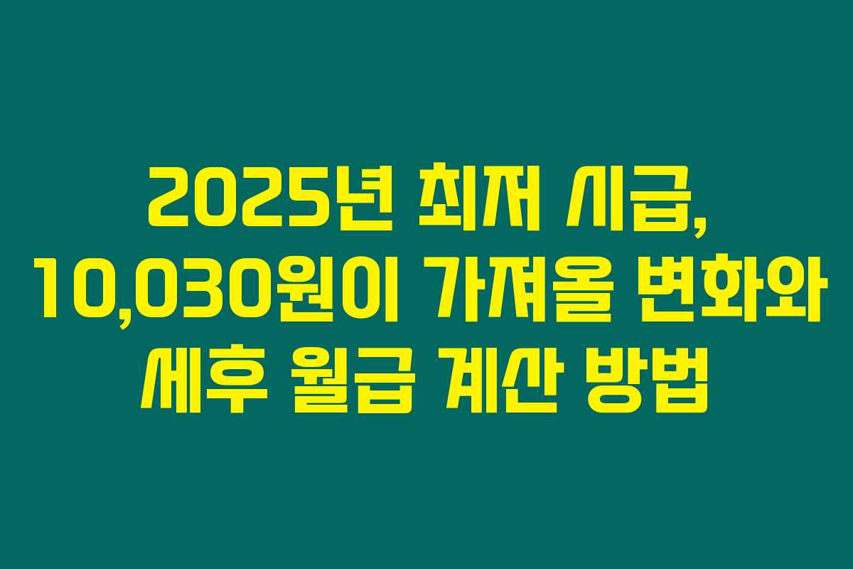 제가 판단하기로는, 2025년 최저 시급이 시간당 10,030원으로 결정되었어요. 이는 2024년 최저 시급보다 170원 오른 금액입니다. 최저 시급 인상이 근로자들에게 미치는 영향과 세전·세후 월급 계산 방법에 대해 아래를 읽어보시면 다양한 정보를 확인할 수 있습니다.