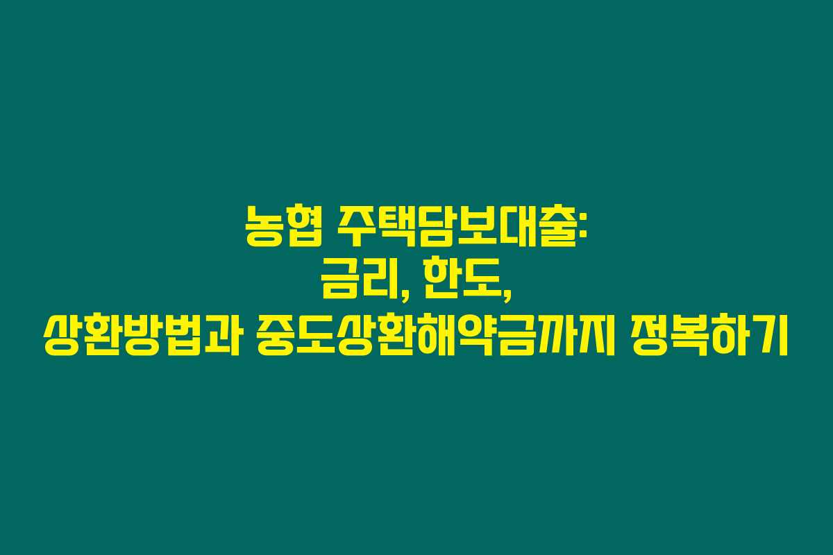 제가 직접 경험해본 결과로는, 내집 마련을 위한 가장 중요한 선택 중 하나는 주택담보대출을 어떻게 활용할 것인지에 대한 고민이에요. 특히 NH농협은행의 주택담보대출은 많은 사람들이 선택하는 상품 중 하나인데요. 오늘은 농협 주택담보대출의 다양한 조건과 세부사항을 정리해 보았습니다. 아래를 읽어보시면 대출금리, 한도, 상환방법, 중도상환해약금과 필요서류에 대해 알림받을 수 있어요.