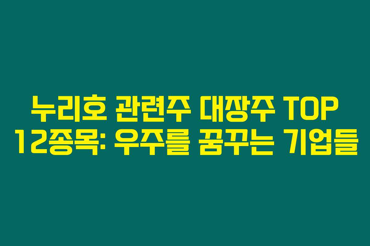 누리호 관련주 대장주로는 한화에어로스페이스, 한국항공우주, 비츠로테크, 한양이엔지 등 12종목이 있으며 각각 누리호와 밀접한 관계를 맺고 있습니다. 이들이 보여주는 성장은 누리호의 성공적인 발사와 맞물려 우리나라의 우주 사업의 미래에 큰 영향을 미칠 것입니다.
