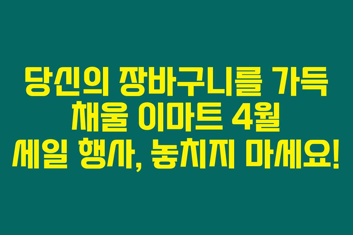 4월, 돌봄 받는 봄의 시작과 함께 이마트에서는 역대급 세일 행사가 진행된답니다. 이마트 4월 세일 행사로 원하는 품목을 저렴하게 구매할 수 있는 절호의 기회를 놓치지 마세요. 특히 필수 식료품들이 대폭 할인 중이니, 이 글을 통해 세일 내용과 구매 추천 아이템을 살펴보세요!