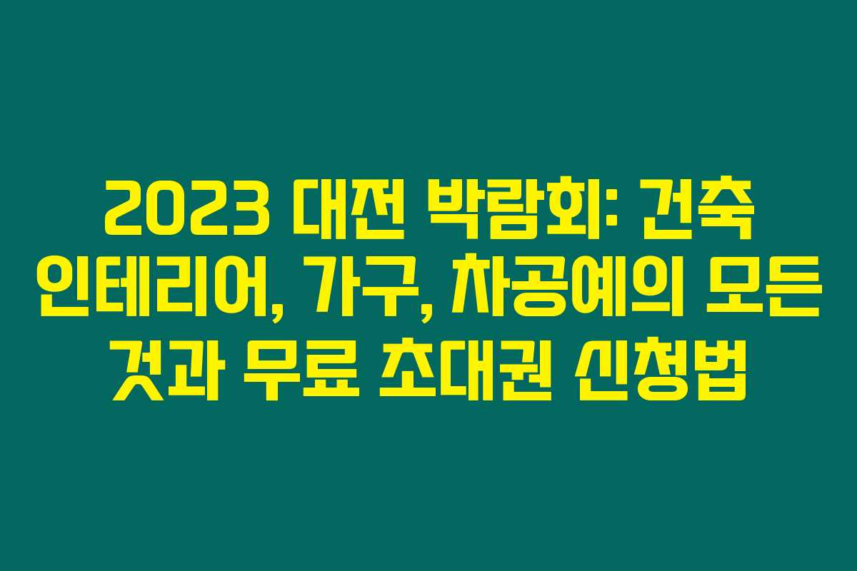 2023년 10월 5일부터 8일까지 대전에서 열리는 건축 인테리어, 가구, 차공예 박람회에 대한 정보를 공유하겠습니다. 이 박람회는 다양한 분야의 전문가와 소비자가 한자리에서 만나는 특별한 기회로, 무료 초대권 신청 방법도 함께 알아보시면 좋겠어요.
