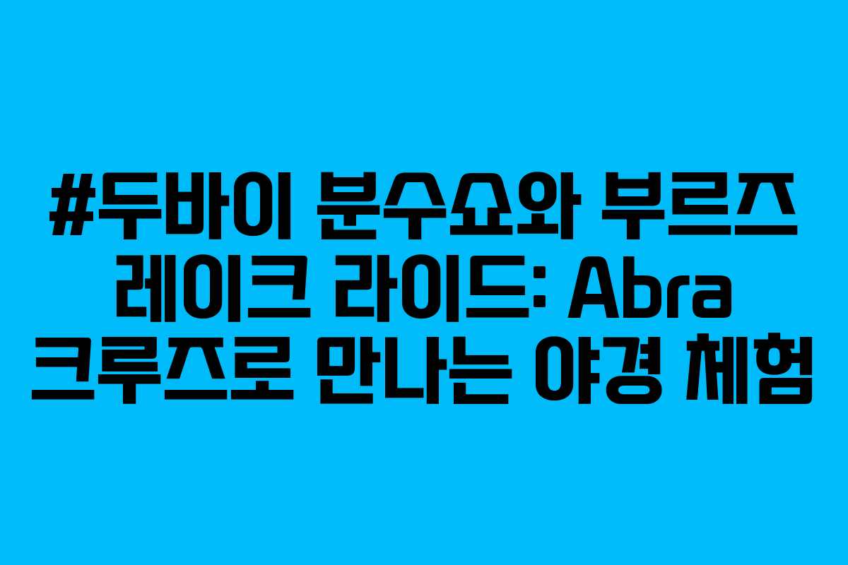 두바이를 대표하는 야경 코스인 분수쇼와 부르즈 레이크 라이드, 전통 보트Abra를 타고 물 위에서 즐기는 크루즈를 하나의 코스로 경험하는 방법을 정리했습니다. 아래를 읽어보시면 예약 포인트와 관람 포인트, 현장 팁까지 한눈에 파악할 수 있습니다.