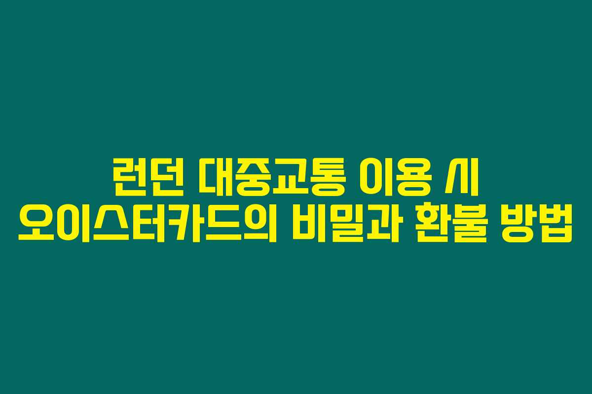 영국 런던에서의 대중교통은 정말 매력적이에요. 만약 이동을 많이 하셨다면, 오이스터카드 환불은 필수죠. 절차가 복잡하지 않으니 아쉬움을 뒤로하고 소중한 비용을 환급받아 여행의 기분 좋게 마무리하세요.