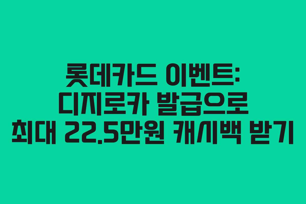 재테크에 관심이 있으신 분들에게 카드테크는 효과적인 방법입니다. 카드사에서 제공하는 신규발급 이벤트를 활용해 캐시백 혜택을 받을 수 있기 때문입니다. 이번에는 롯데카드의 디지로카 발급을 통해 최대 22.5만원의 캐시백을 받을 수 있는 기회를 소개합니다.