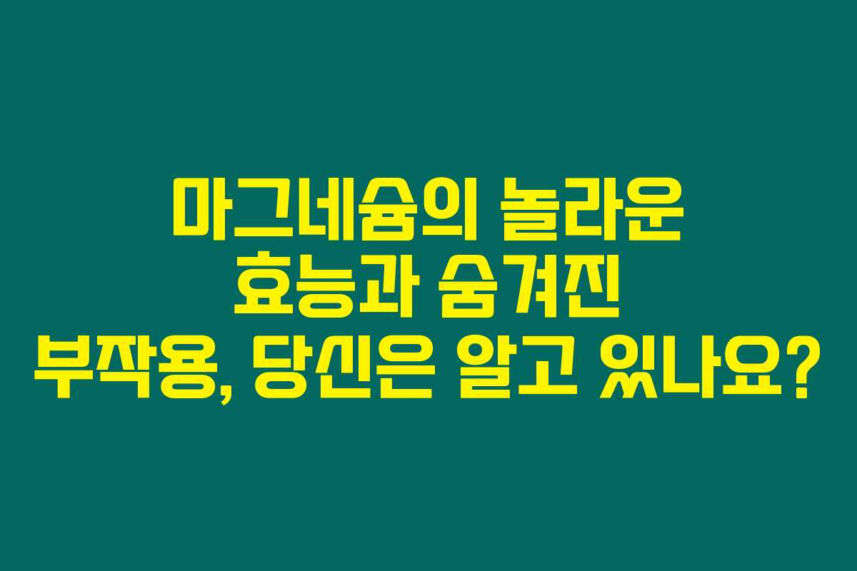 마그네슘 부족으로 힘들어하는 사람이라면, 이 소중한 미네랄의 효능과 부작용을 꼭 알아야 해요. 신체에 마그네슘이 얼마나 중요한지 알고 계신가요? 마그네슘은 여러 생리적 기능을 담당하는데, 부족하면 건강 문제를 초래할 수 있답니다. 아래를 읽어보시면 앞으로의 건강 관리에 많은 도움을 받을 수 있을 거예요!