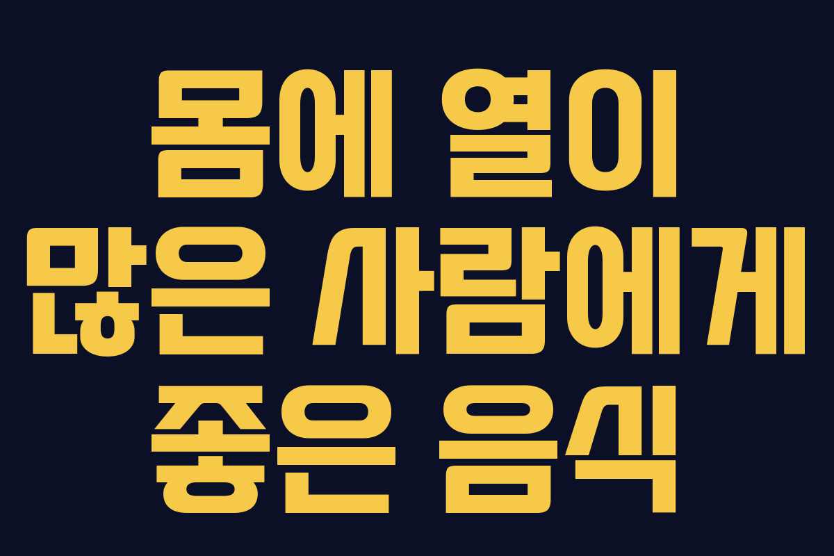 여름철 더위는 많은 사람들이 경험하는 고통입니다. 특히 몸에 열이 많은 사람들은 이더위를 더욱 느끼게 됩니다. 이러한 체질을 가진 분들을 위해 몸의 열을 내릴 수 있는 음식들을 소개하겠습니다.