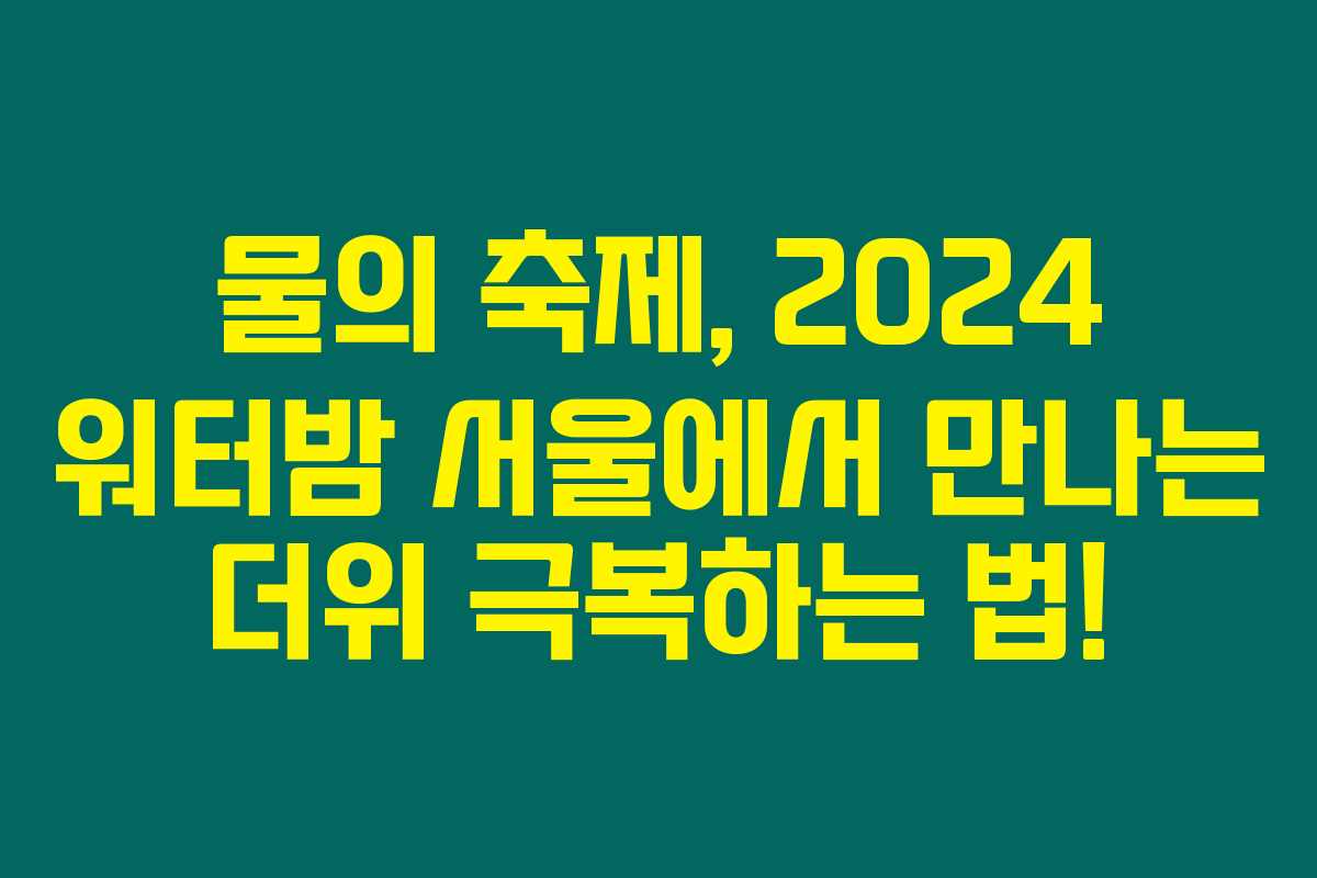 2024년 여름, 뜨거운 날씨를 물리칠 특별한 축제가 여러분을 기다리고 있습니다. 바로 2024 워터밤 서울입니다! 물을 온몸으로 느끼며 뛰어놀 수 있는 이 축제는 단순히 물놀이라기보다는 뮤직 페스티벌의 색다른 재미를 더한 행사입니다. 아래를 읽어보시면 이번 워터밤 서울의 일정, 가격, 아티스트 라인업에 대한 자세한 정보를 확인할 수 있습니다.