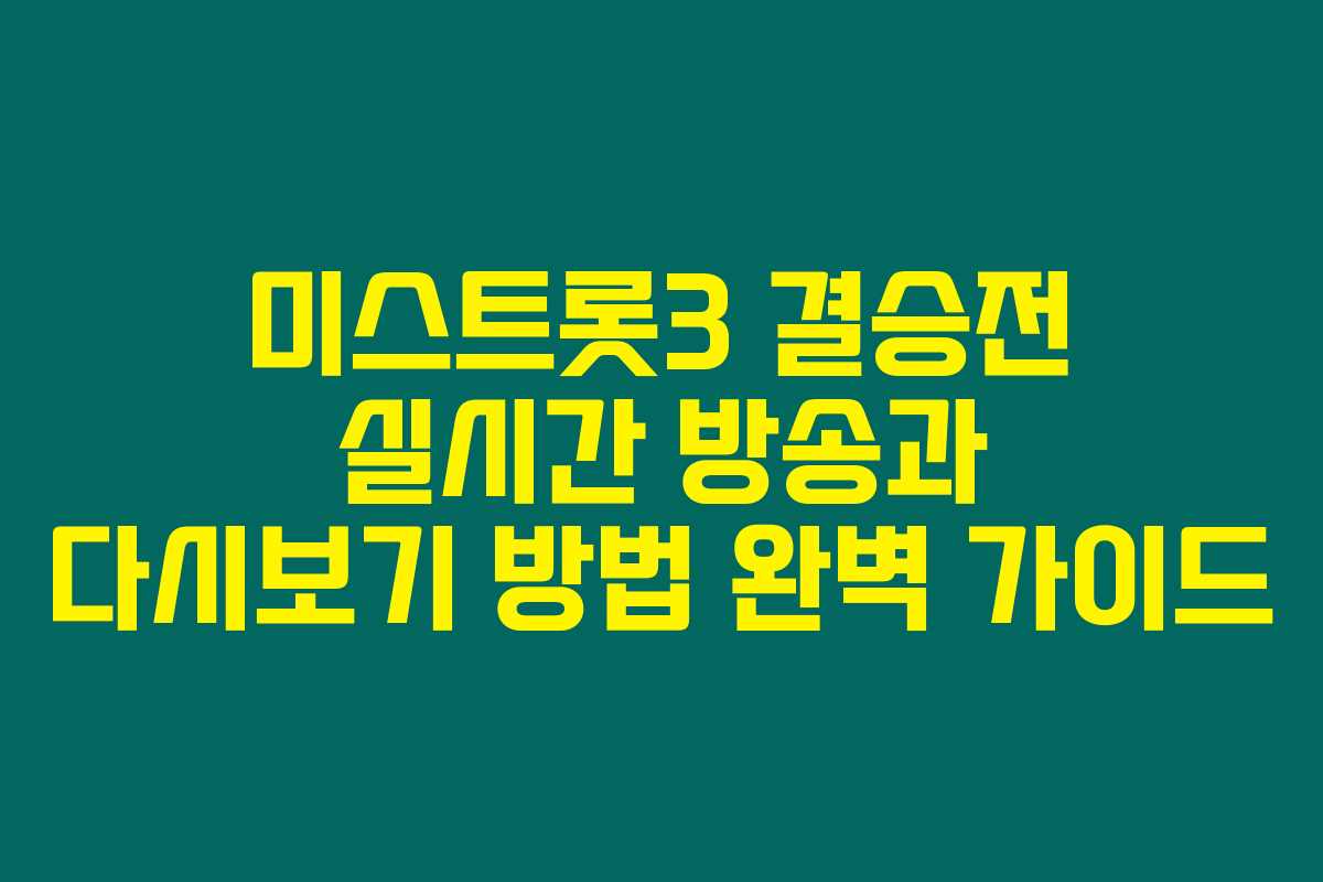 절대 놓치면 안 될 미스트롯3의 결승전부터 경합까지 여러 방법으로 다시 볼 수 있어요. 지금부터 각 방법을 하나하나 소개해드릴게요.