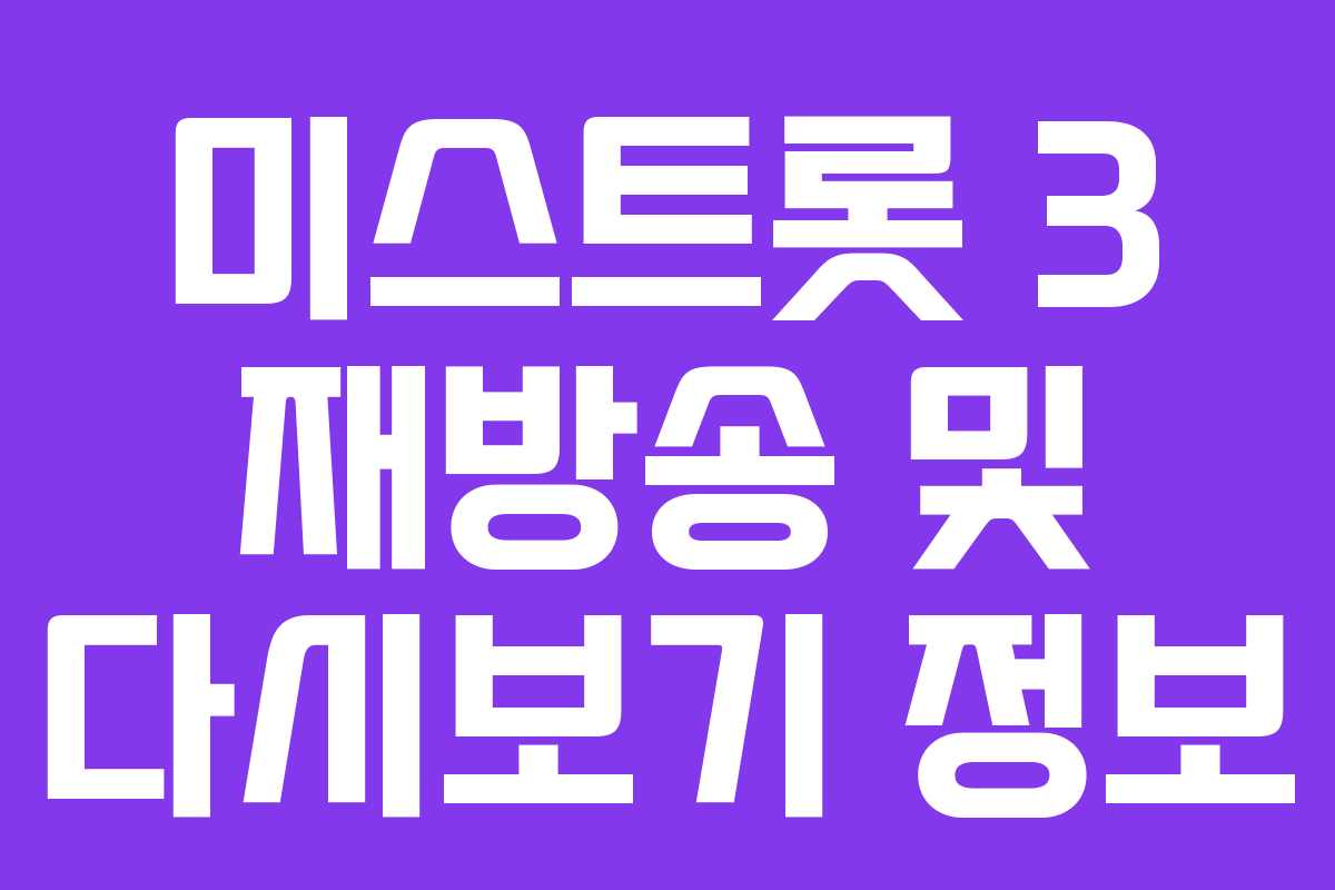 미스트롯 3는 매주 목요일 저녁 9시 50분에 방영됩니다. 시청을 놓친 경우에는 다양한 재방송 및 다시보기 방법이 있습니다.