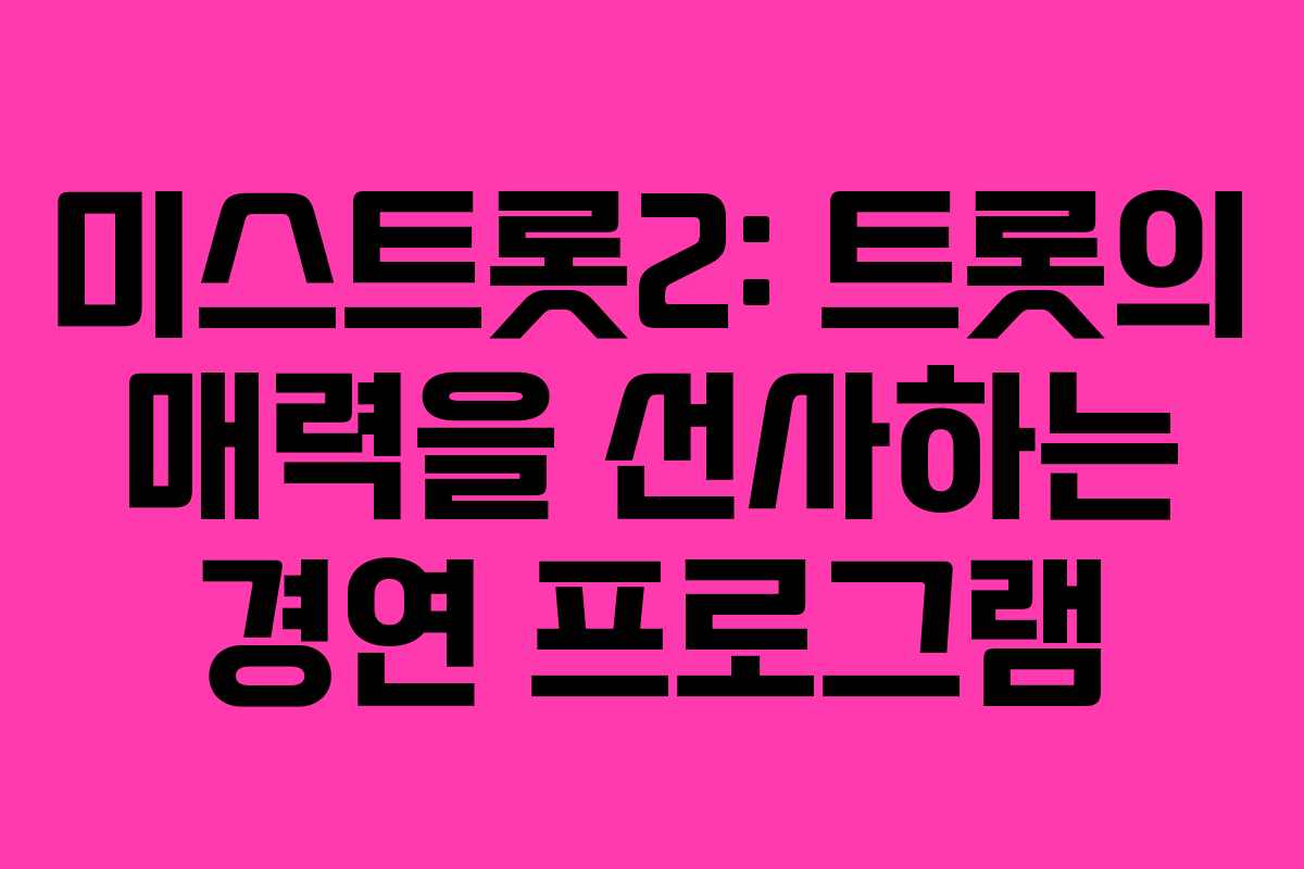 미스트롯2는 다양한 참가자들이 트롯 경연을 통해 실력을 겨루는 음악 프로그램입니다.