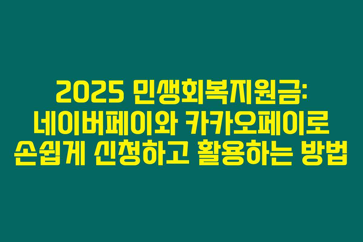 2025년 최악의 경제 상황 속에서 민생회복지원금이 절실한 분들에게는 특히 주목할 내용입니다. 민생회복지원금을 통해 네이버페이와 카카오페이를 간편하게 이용하실 수 있는데요. 민생회복지원금 어떻게 신청하고 사용해야 할까요? 아래를 읽어보시면 자세한 방법과 혜택을 알아볼 수 있어요.