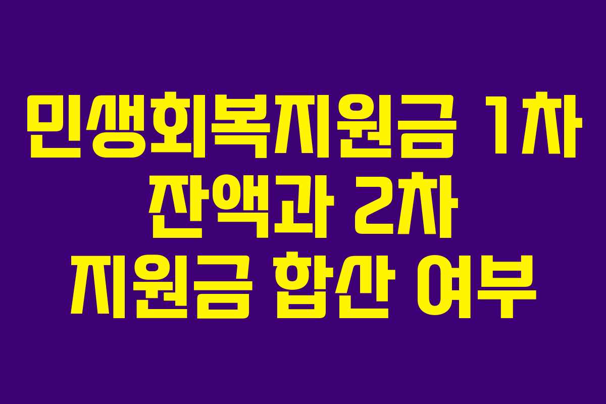 많은 분들이 1차 민생회복지원금 잔액이 2차 지원금과 합산될 수 있는지에 대해 궁금해 하십니다. 결론적으로 말씀드리면, 1차 지원금 잔액과 2차 지원금은 합산되지 않습니다. 이 두 지원금은 별개의 정책으로, 각각의 신청 기간과 지급액이 따로 정해져 있습니다.