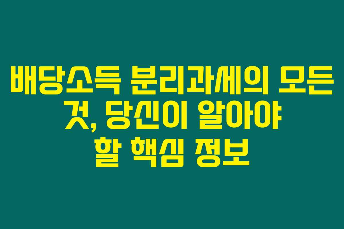 제가 직접 알아본 바로는 배당소득 분리과세는 금융 투자자와 기업에 큰 영향을 미치는 세금 제도입니다. 이 제도를 통해 배당소득에 대한 세금 부담을 경감할 수 있는 방법이 존재하며, 많은 사람들이 이를 이해하기 위해 노력하고 있습니다. 아래를 읽어보시면 분리과세의 개념, 장단점, 요건, 세율에 대한 구체적인 정보를 얻을 수 있습니다.