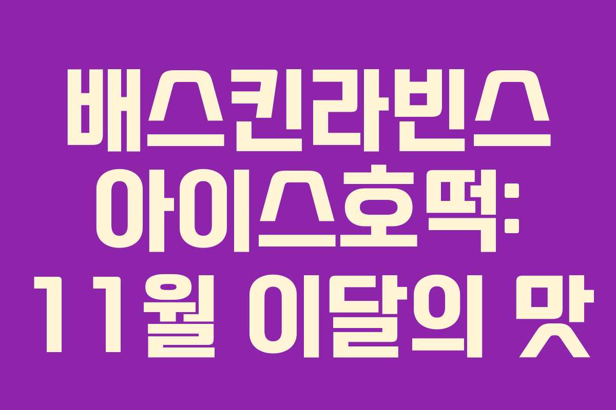 배스킨라빈스에서 11월 이달의 맛으로 선정된 ‘아이스호떡’은 겨울 시즌에 맞춰 출시된 특별한 아이스크림입니다. 호떡의 달콤한 맛을 아이스크림으로 즐길 수 있어 많은 소비자들의 기대를 모으고 있습니다.