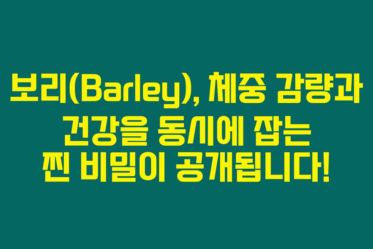 보리(Barley), 체중 감량과 건강을 동시에 잡는 찐 비밀이 공개됩니다!