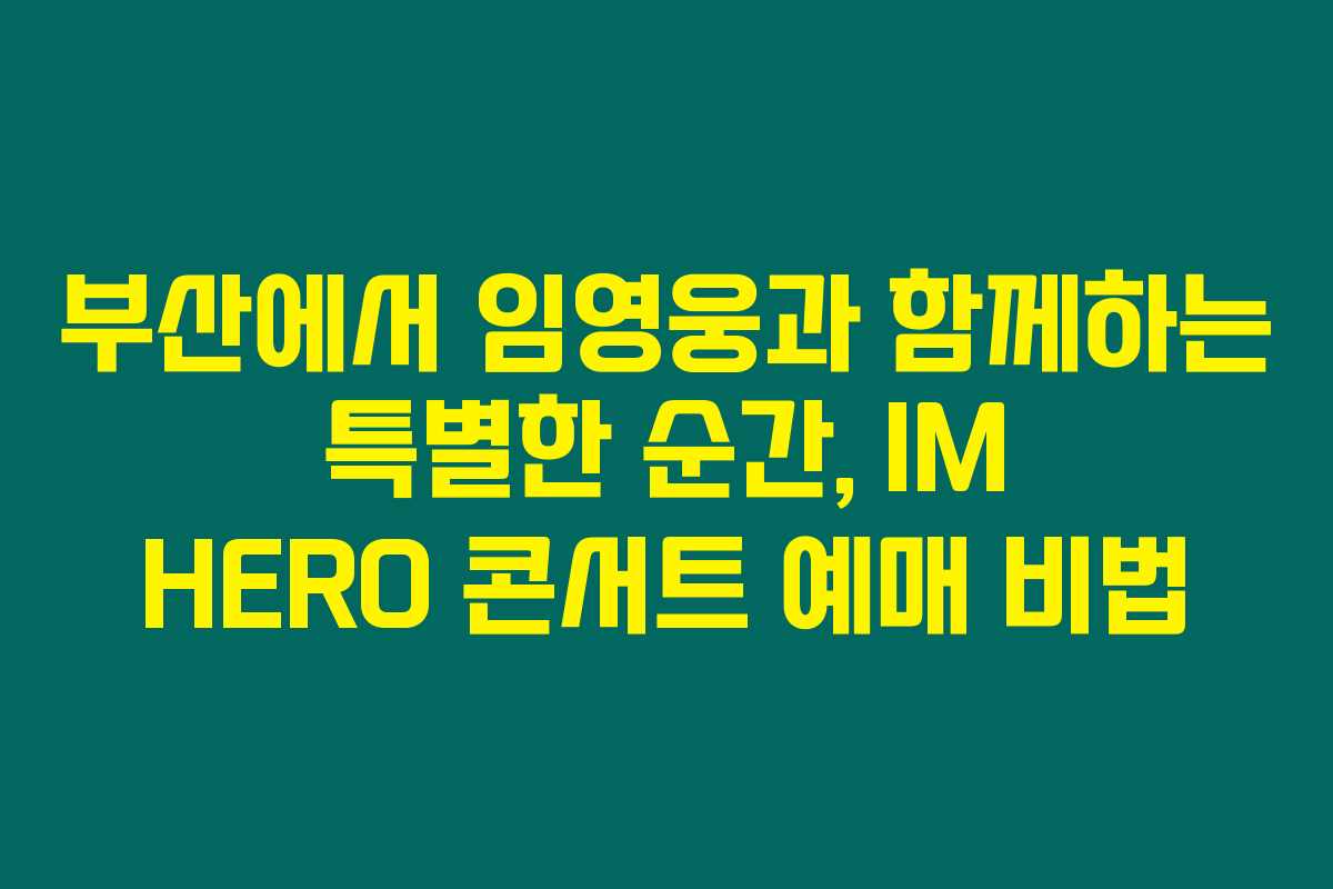 부산에서 열리는 임영웅의 IM HERO 콘서트는 정말 특별한 경험이 될 거예요. 예매에 성공하신다면 잊지 못할 순간이 기다리고 있을 겁니다. 기대하는 만큼 준비해봐요!