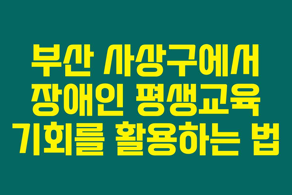 부산 사상구에서 장애인 평생교육 기회를 활용하는 법
