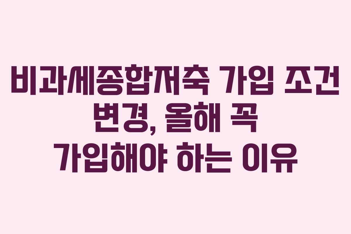 비과세종합저축 가입 조건 변경, 올해 꼭 가입해야 하는 이유