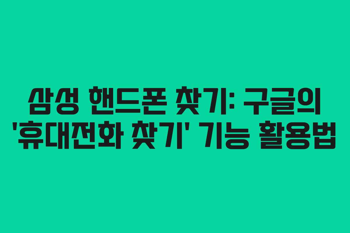 이 정보를 통해 삼성 핸드폰을 분실했을 때의 대처 방법을 익히고, 구글의 ‘휴대전화 찾기’ 기능을 활용해 보시기 바랍니다.