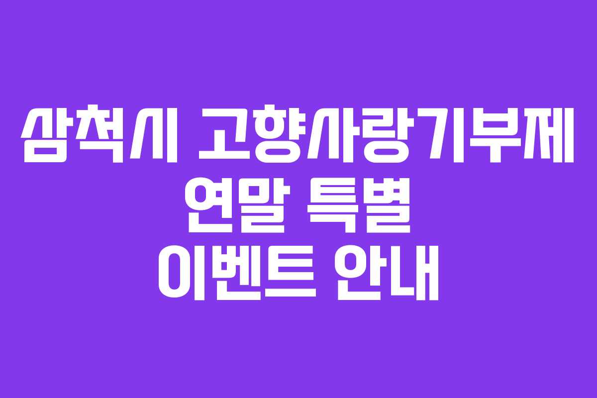 삼척시에서 진행하는 고향사랑기부제의 연말 특별 이벤트가 여러분을 기다리고 있습니다. 기부를 통해 따뜻한 마음을 나누고, 다양한 혜택을 누릴 수 있는 기회를 놓치지 마세요!