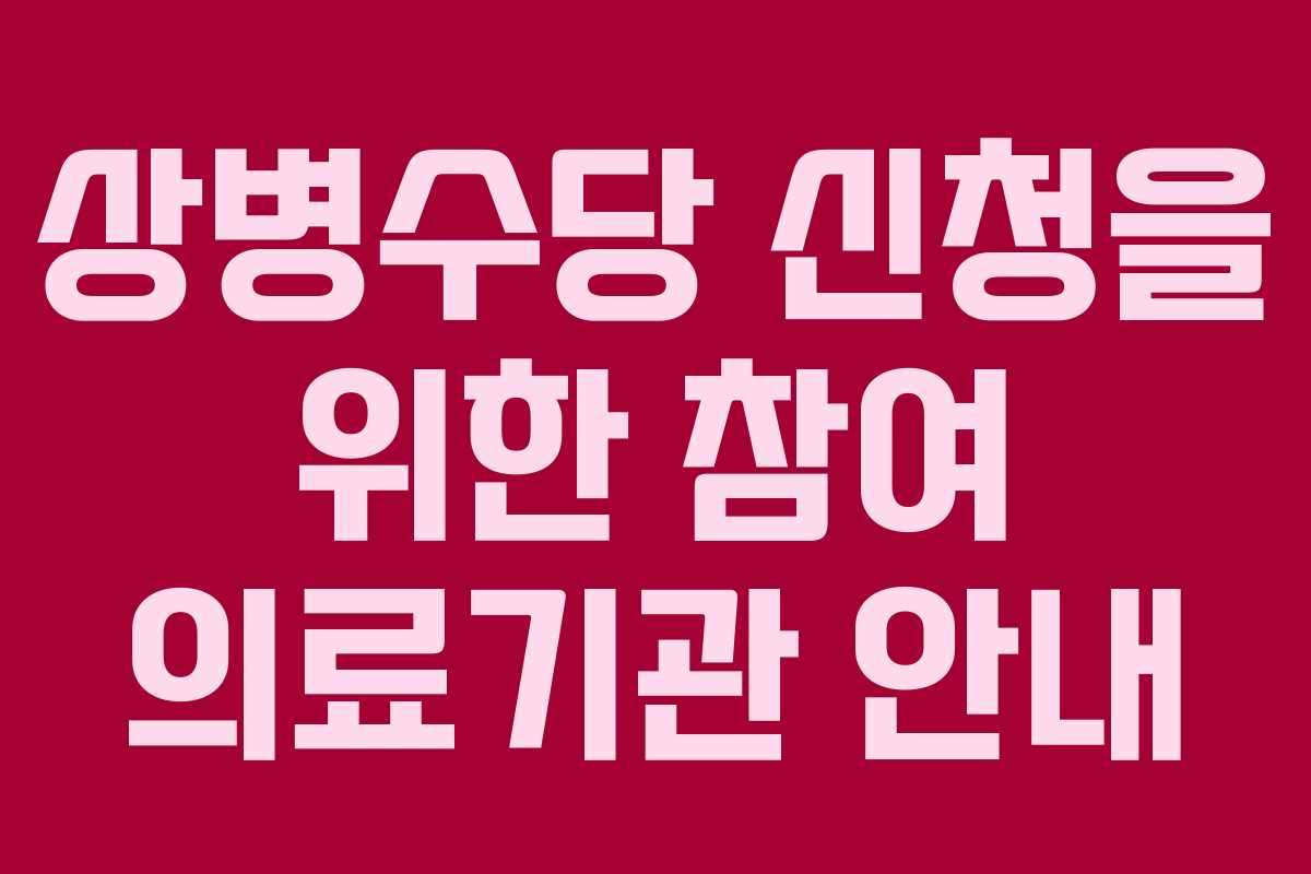 각 지역의 상병수당 참여 의료기관 목록은 지방자치단체나 관련 부처의 공식 웹사이트에서 확인할 수 있습니다.