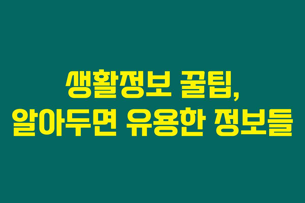 각종 정보는 우리의 일상에 큰 영향을 미치고 있죠. 특히 매일 반복되는 일들에서 새로운 해결책을 찾는 것이 중요한데요. 그럼 생활정보 꿀팁을 통해 여러분의 삶을 좀 더 편리하게 만들어볼까요?