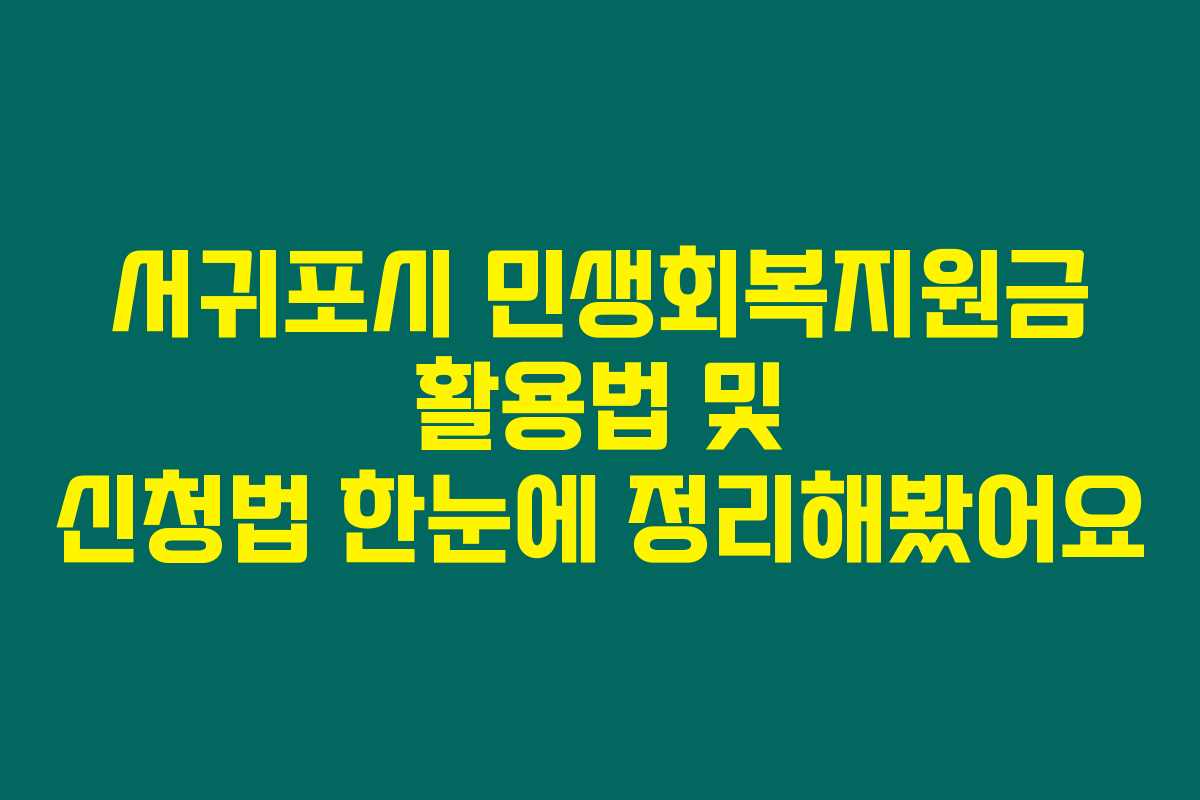 서귀포시 민생회복지원금을 신청하고 활용하는 방법을 모르고 계신가요? 이렇게 경제적으로 힘든 요즘 우리에게 꼭 필요한 지원금이 아닐까요? 특히 서귀포 지역 주민이라면, 이 정보를 꼭 체크해야 해요. 아래를 읽어보시면 쉽게 신청하고 필요할 때 활용할 수 있는 방법을 알게 될 거예요.